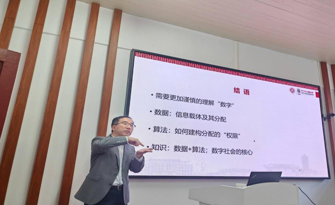 首先,黄璜教授从治理体系中的主体、客体及其之间的分配关系入手,阐明了数字在国家治理和社会分配中的优势,并在数字基础上延伸出对数据、算法及其之间关系的解释。其次,他指出了数字治理的四个层次——数字技术、数字系统、数字网络和数字社会,并分别介绍了数字治理领域的十二类主流研究。最后,他阐述了理解数字治理的六个维度——应用与理论维度、工具与对象维度、发展与安全维度、体系与能力维度、时间与空间维度、结构与复杂维度,帮助同学们更好地理解数字与数字治理。黄璜教授还与师生们进行了深入的交流互动,回答了基层数字负担、数字技术推进廉政建设、数字方法与技术的学习等问题。