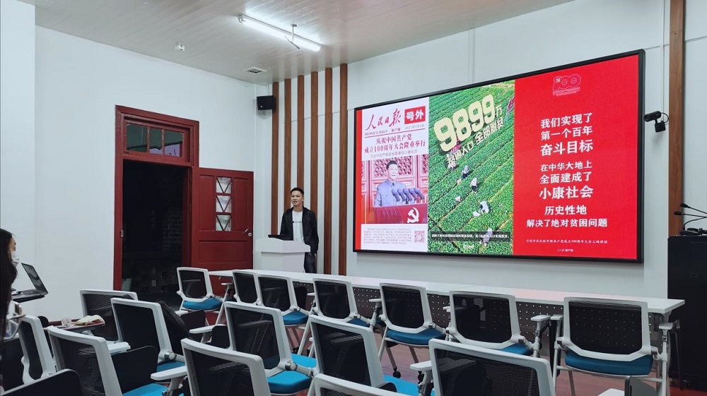 硕士研究生第二党支部在院楼221室召开预备党员转正大会暨伟大建党精神专题学习。本次会议由党支部书记肖苏华主持,支部全体党员参加。