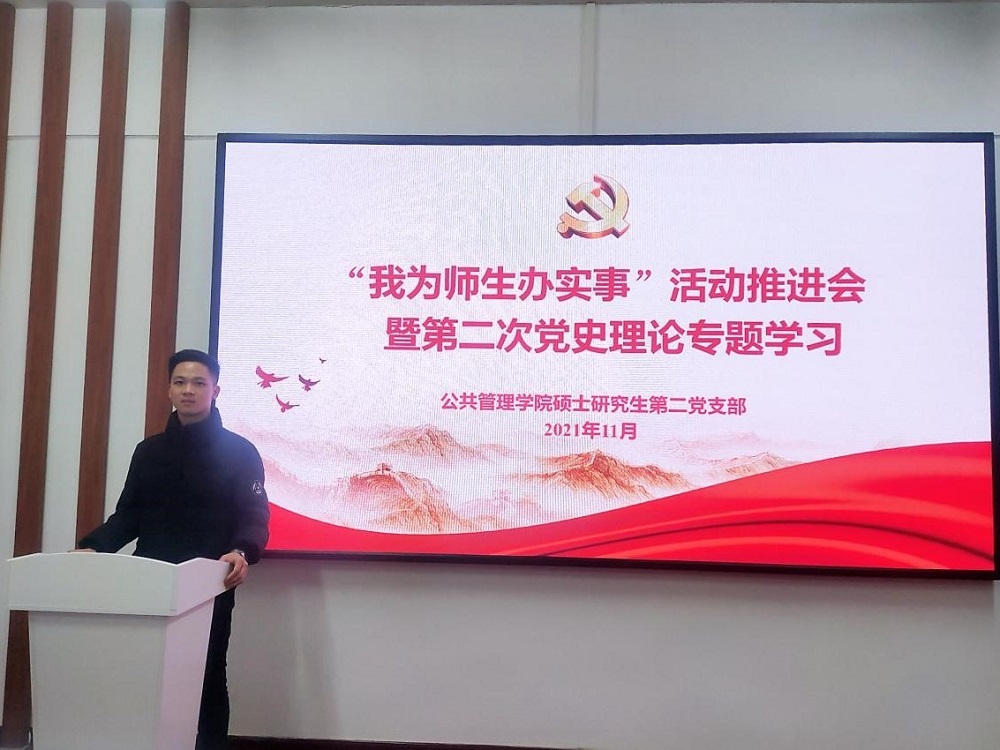 硕士研究生第二党支部“我为师生办实事”活动推进会暨第二次党史理论专题学习在院楼221室召开。支部全体党员、入党积极分子参加。
