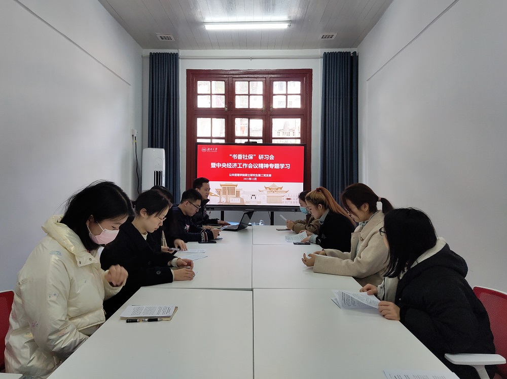 硕士研究生第二党支部于院楼220室开展“书香社保”研习会,学习中央经济工作会议精神暨集体过政治生日活动,支部书记肖苏华主持会议,支部全体党员参加。