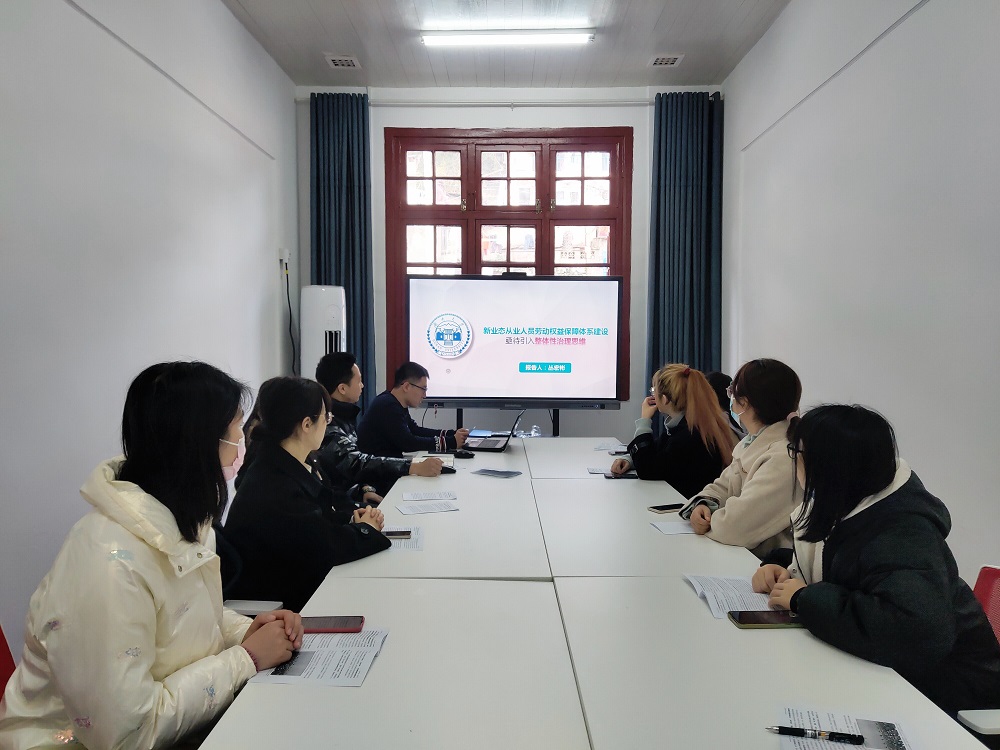支部组织委员丛宏彬根据中央经济工作会议精神,深入挖掘研究视角,拓宽理论学习深度,结合社会保障研究方向,为支部成员作了《新业态从业人员劳动权益保障体系建设:亟待引入整体性治理思维》专题报告,详细阐述了新业态从业人员劳动权益保障的问题由来,梳理了新业态从业人员劳动权益保障的碎片化现状,提出要利用整体性治理思维来健全劳动权益保障体系。