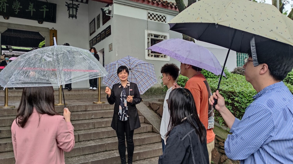 5月21日,日韩无码 党委围绕“学史崇德,在红色传承中汲取奋进力量”主题开展专题学习。学院党委副书记、党支部书记、组织干事前往岳麓书院进行实地学习,院党委书记付蓉芬就“党的实事求是思想路线策源地”作专题讲解。