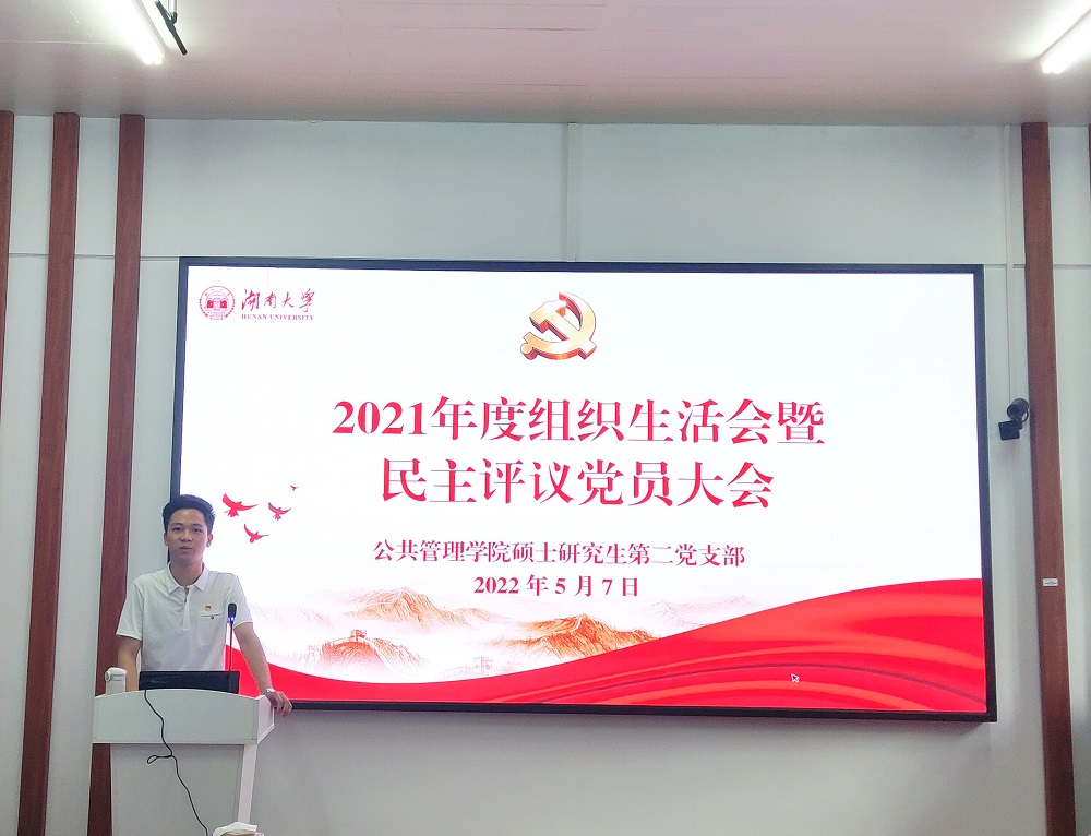 5月7日下午,学院硕士研究生第二党支部在221室召开2021年度民主评议会,支部书记肖苏华主持会议,全体支部党员参加。