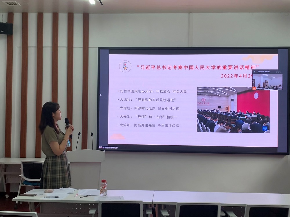 史钰宏同志首先领学了4月25日习近平总书记在中国人民大学讲话精神,结合专业的学习与研究希望各位同志自身的研究能够“回答时代之题”、“彰显中国之理”。随后,支部组织委员陈雪莹将其与2020年9月总书记考察日韩无码