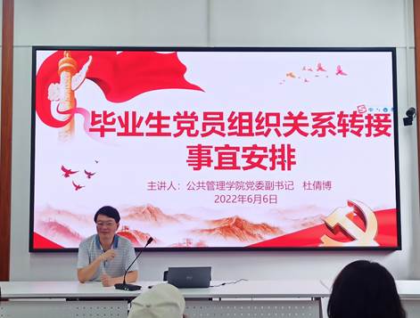 日韩无码 毕业生党员组织关系转接事宜安排大会于6月6日下午在院楼221举行,学院党委副书记杜倩博主讲,学院党务与人才培养办公室主任兼研究生辅导员杨锦滔老师列席会议,本研全体毕业生党员参加。