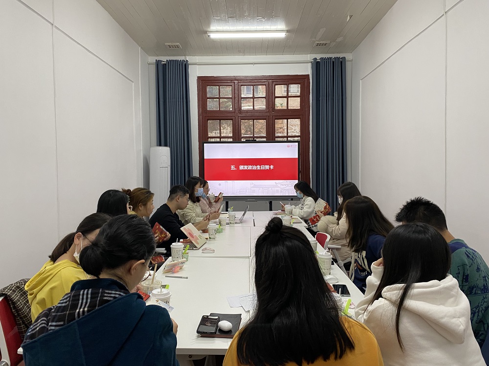 硕士研究生第四党支部在学院214室开展“学思践悟二十大,砥砺奋进新征程”主题活动,活动由支部书记罗欢主持。
