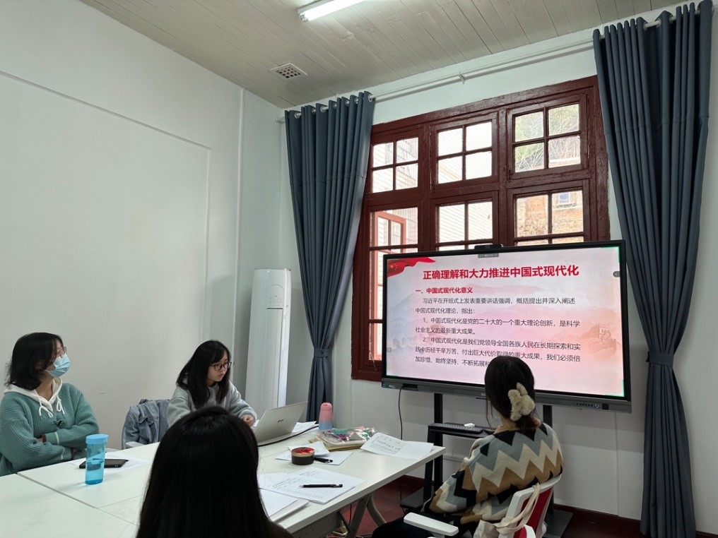 5月4日下午,硕士研究生第四党支部在学院214室开展“习近平总书记关于中国式现代化道路的重要论述”学习活动,夏根以“正确理解和大力推进中国式现代化、当前和未来一个时期如何全面贯彻党的二十大精神”为主要内容开展领学,参会同志积极参与,就中国式现代化的特征、中国式现代化与西方现代化的本质区别等问题展开讨论。
