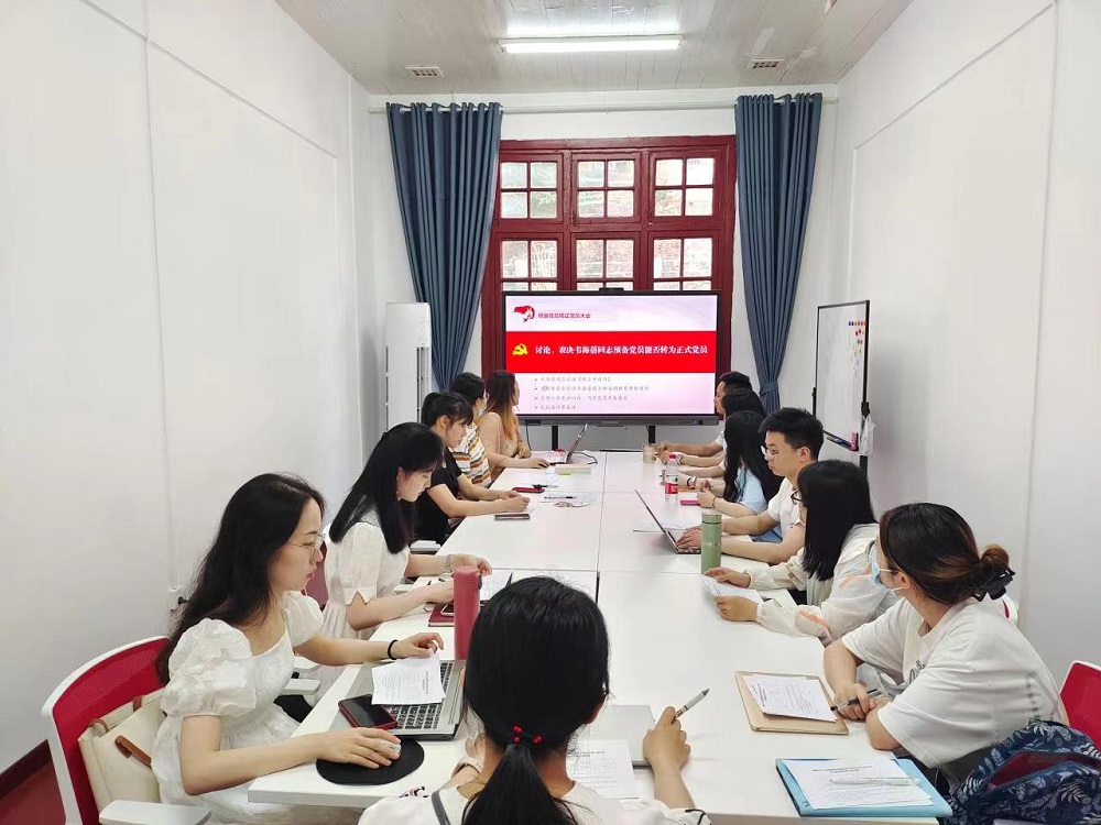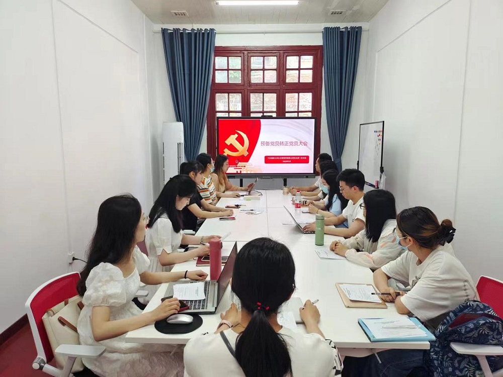 预备党员转正党员大会上,韦海蓓、叶珺洁同志宣读转正申请书,汇报了预备期间的思想、学习、工作和生活等情况,表明了在今后积极向党组织靠拢、以合格党员标准要求自己的决心。张佳乐同志代表支委会介绍了韦海蓓、叶珺洁同志在预备期间的教育考察情况,就能否按期转正提出意见。入党介绍人分别向与会党员汇报了叶珺洁、韦海蓓同志的预备期考察情况并表明意见,与会党员同志也就韦海蓓、叶珺洁同志在预备期间的表现积极发表意见。经大会充分讨论和无记名投票表决,一致通过了韦海蓓、叶珺洁同志的转正申请。与会党员向按期转正的两位同志表示祝贺。
