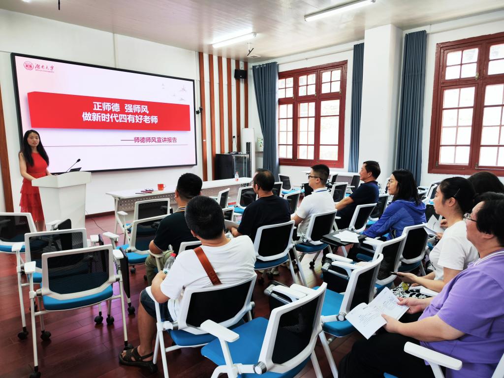 会上,程聪慧同志进行师德师风宣讲报告,各党员同志参与学习研讨。王楠老师、杨晶老师先后发言,他们提到高校教师是先进思想文化的传播者,党执政的坚定支持者,学生健康成长指导者和引路人,为此,要严格把握师德师风的原则、要求和标准,坚决抵制违反师德师风的行为,以身作则、为党育人。大家纷纷表示将更加紧密地团结在党的伟大思想旗帜下,在强国建设、民族复兴的伟大征途中踔厉奋发、勇毅前行。