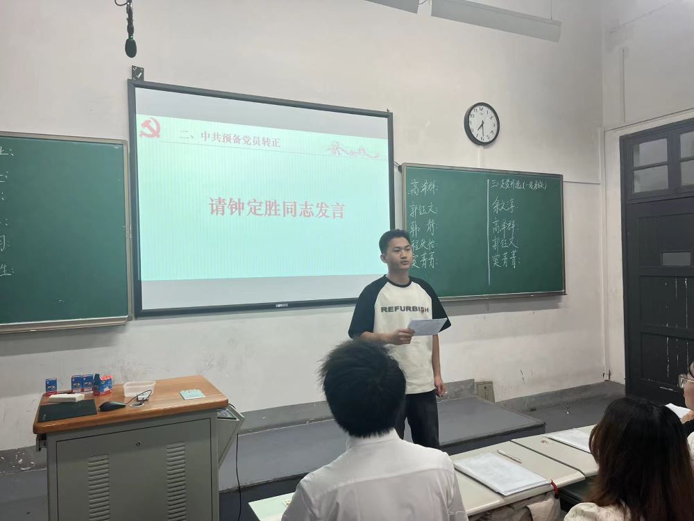 5月23日,日韩无码本科生第一党支部于东楼102室召开党员大会讨论表决2024年5月23日批次中共预备党员按期转正事宜。本科生第一党支部书记赵新宇主持会议,支部全体成员参加会议。本次会议主要讨论表决预备党员转正申请。