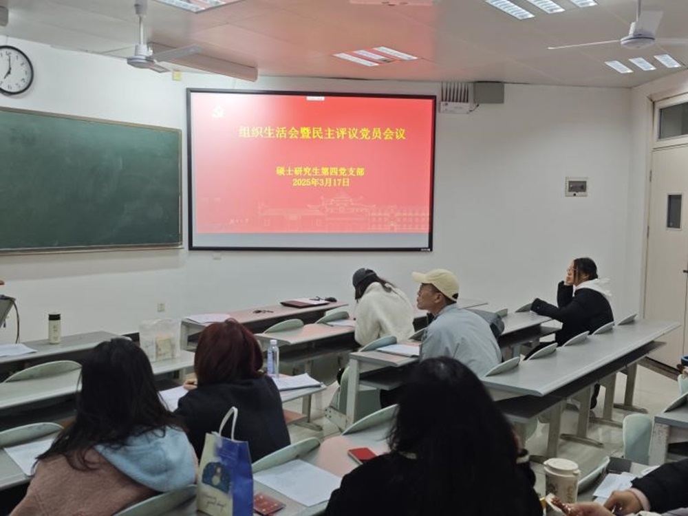 硕士研究生第四党支部于水教503召开2024年度组织生活会暨民主评议党员大会。支部书记黄建丽主持会议,支部全体党员参与。