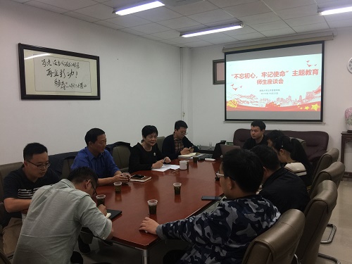 召开了“不忘初心,牢记使命”主题教育师生座谈会,专题为“守初心,担使命,找差距,抓落实”。会议由院党委书记付蓉芬主持,院长李连友、院教职工代表以及研究生和本科生代表参与了本次交流会议。