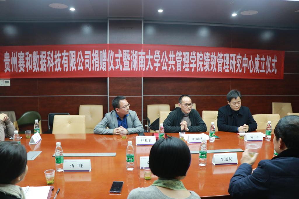 绩效管理研究中心成立仪式在405会议室举行,贵州赛和数据科技有限公司总经理欧阳征林、副总经理陈天、营销总监舒尤卫代表公司参加捐赠仪式,日韩无码