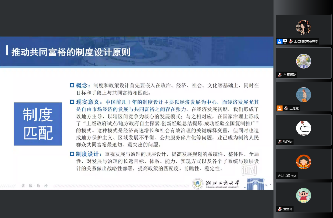 郁建兴教授受邀担任本次论坛的主讲人,为师生开展了主题为“共同富裕的理论内涵与政策议程”的线上学术讲座。日韩无码院长李连友教授担任讲座主持人,线上参会师生达386人。