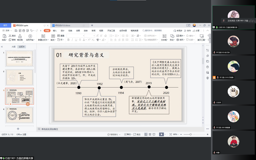 线上交流拉近距离,春风化雨密切联系,思想碰撞激扬文字。老师们的悉心指导与建议,为同学们调整研究设计中的存在问题指明了方向,加强了同学们对学术研究严谨性、科学性和规范性的深刻认识。研究设计是我们从知识消费者转变为知识生产者的重要一步,关关难过关关过,我们永远在路上!