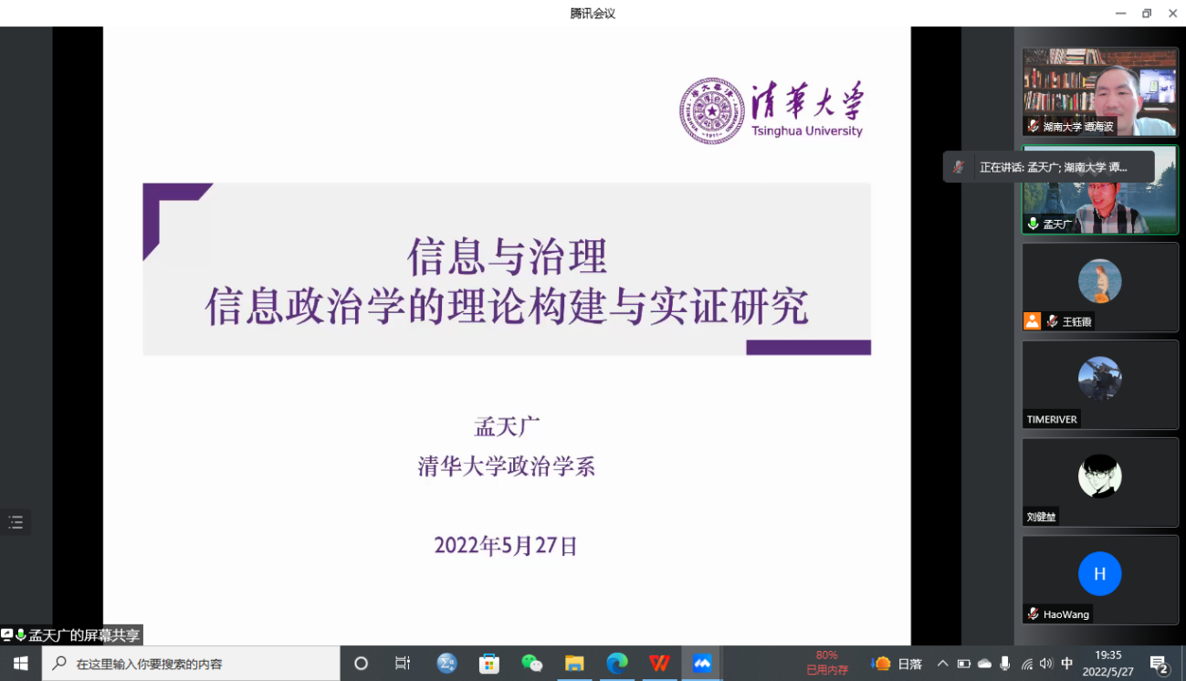 公共管理学科恢复二十周年系列活动之一。清华大学社会科学学院副院长、政治学系长聘副教授孟天广老师受邀担任本次论坛的主讲人,为师生开展了主题为“信息与治理:信息政治学的理论构建与实证研究”的线上学术讲座。日韩无码副院长谭海波教授担任讲座主持人,线上参会师生达200余人。