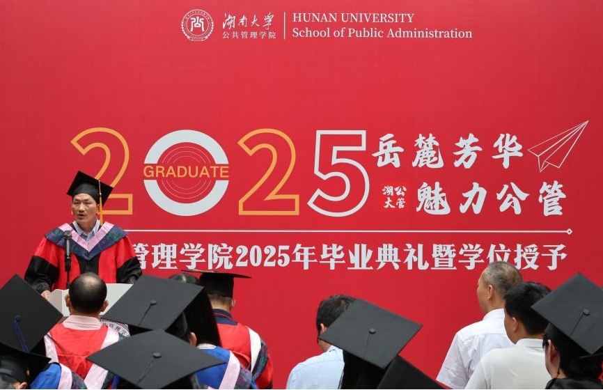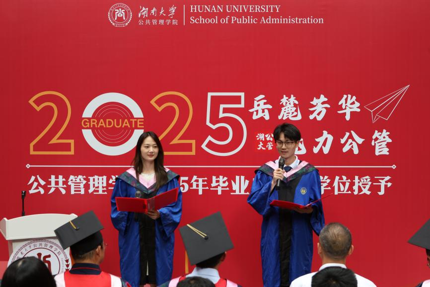 一是传承“传道济民”的书院文化,彰显公共情怀。希望同学们承袭张栻、魏源、曾国藩等书院先贤的崇高风范,将个人理想融入时代洪流,运用所学的公共管理专业知识为国家发展添砖加瓦、为人民群众排忧解难,永葆“为公”的初心与“济世”的情怀。