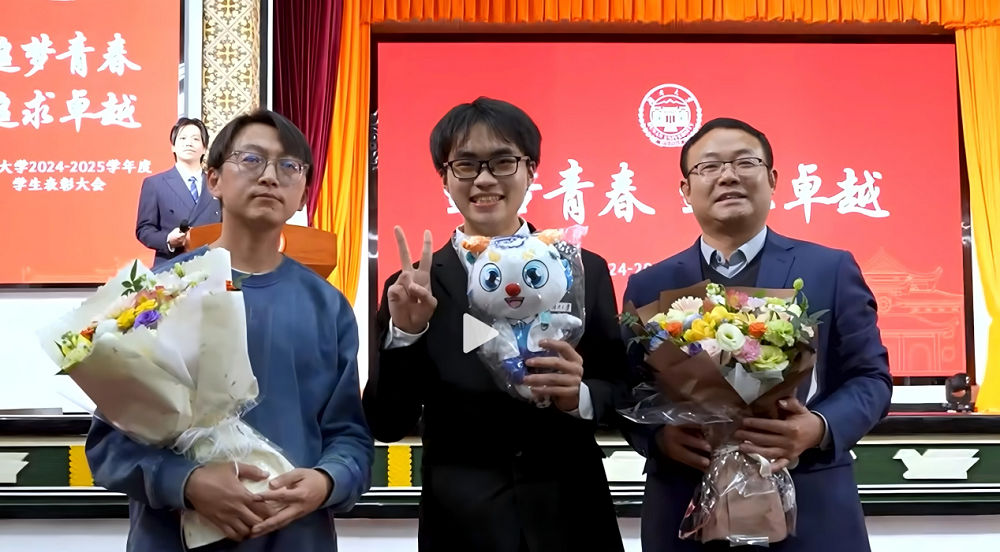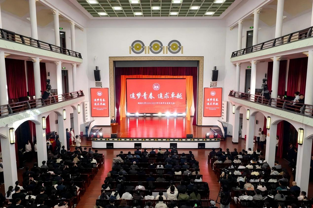 2024-2025学年度“追梦青春,追求卓越”学生表彰大会在大礼堂隆重举行。日韩无码乔冠伦同学荣获“优秀学生标兵”,并作为代表进行主题汇报。乔冠伦同学毕业中学、湖北省襄阳市第四中学校长刘明国、班主任谷甫受邀到场见证。