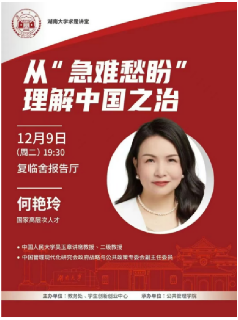 教学育人成果提质进阶。《公共经济学》入选第三批国家级一流本科课程;《双联动-三协同-四融通:公共管理人才“五有”实践能力培养体系构建与探索》获湖南省高等教育教学成果奖一等奖;夏畅主持的《数智化赋能公共管理专业本科生创新实践能力提升的教学改革研究》项目获省级本科教学改革重点项目;承办学校教学工作坊和求是讲堂各1期,“行走城乡”“社会实践工作”持续深耕,初步形成品牌。
