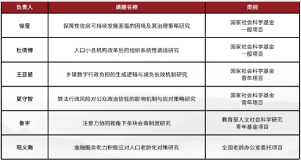 科研项目与智库服务能级稳中向好。获国家社科基金4项、教育部社科项目1项、全国老龄办委托项目1项。智库成果获中央办公厅采纳、省部级领导批示20余项,2项成果获CTTI2025年度智库成果二等奖,民政部政策理论研究基地入选CTTI2025年度来源高校智库百强提名。