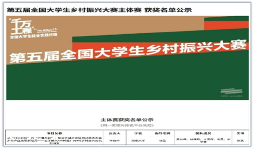 学科竞赛捷报频传。获全国大学生社会保障案例大赛一等奖、全国大学生不动产估价技能大赛二等奖、全国大学生乡村振兴大赛铜奖等多项奖项。本科生乔冠伦荣获校“优秀学生标兵”并在全校表彰大会作主题汇报。