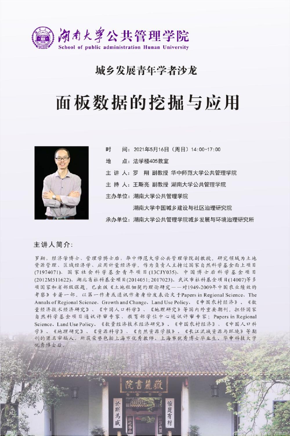 城乡发展与环境治理研究所打造的学术活动平台之一。该平台以提升学术素养、促进学术碰撞、激发学术灵感为根本追求,不定期邀请国内外活跃的优秀青年学者开展高质量学术讲座,就城乡发展领域的一系列重要理论和现实议题进行广阔的学术讨论,力求营造开放、自由、宽松的交流氛围,推动形成相互启发、共同进步的学术共同体。