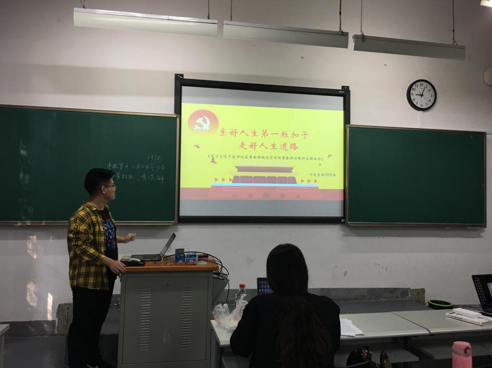 时的重要讲话精神为主题的班会。本次会议由班长王琦珑主持,行政1801班全体成员参加会议。