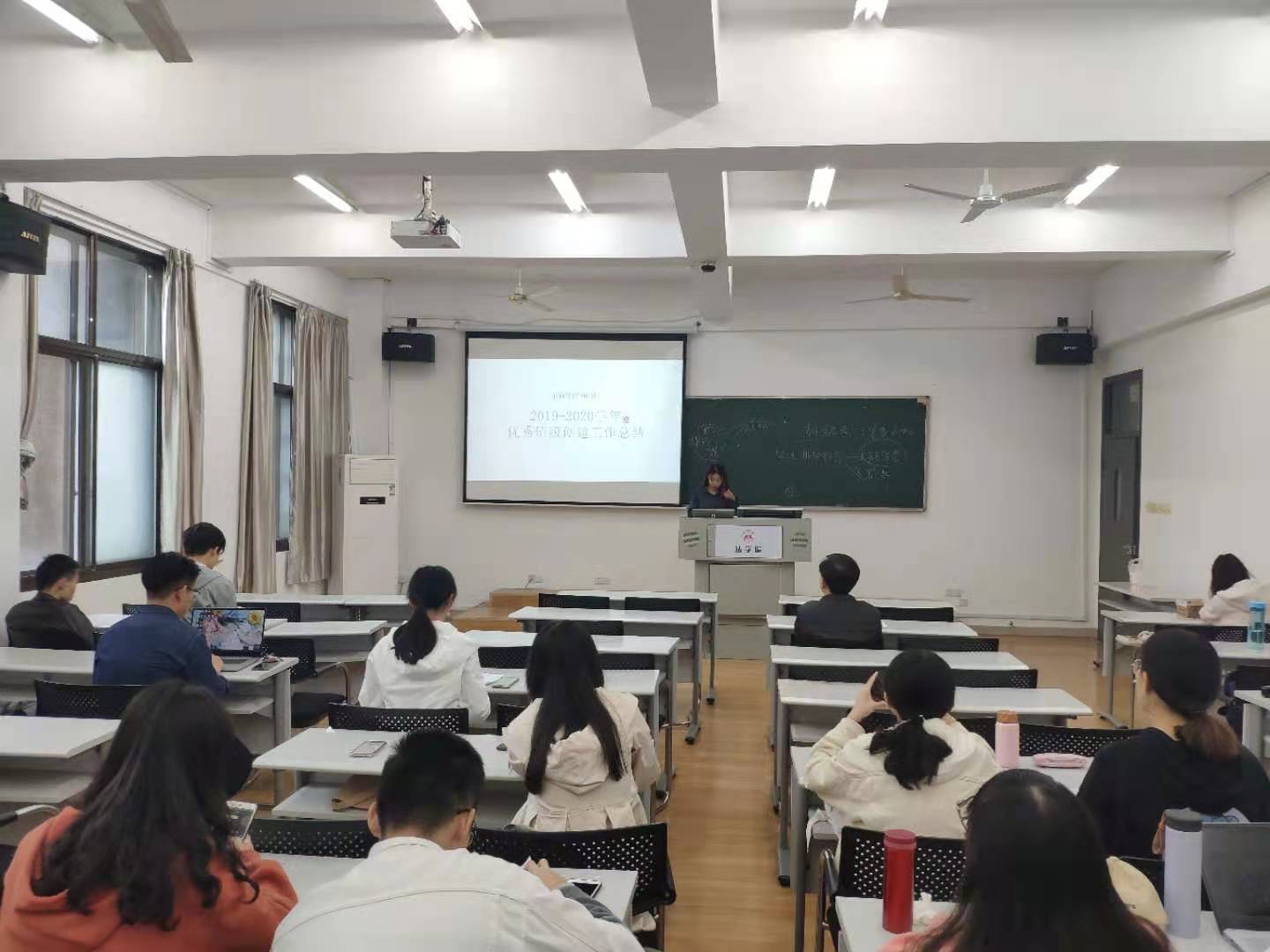 交流会中,19级和20级四个班级分别汇报了班级创建优秀班集体的工作规划,并针对创建工作提出相关问题,随后,17级和18级的四个班级首先汇报了在创建优秀班集体过程中班级的各项工作及活动开展情况,并针对前面班团提出的问题进行回答,同时分享了创建优秀班集体的经验。最后,杜倩博老师指出要以班风促学风,通过创建优秀班集体的相关班级活动促进学生严以律己不断提高。