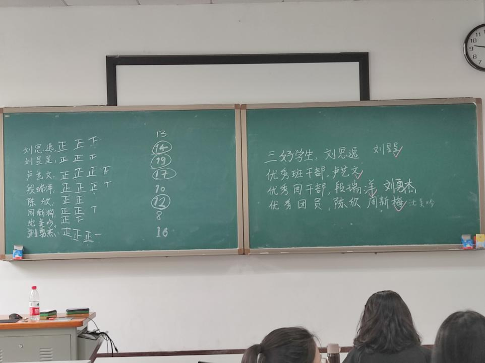 会议伊始,团支书陈欣宣读评选细则,明确了评选的项目和条件。此次五四评优同学们积极参与评选,周新梅、段瑞洋、刘昱呈等八名同学积极参加并按照顺序以此发言,讲述自己的优势和所获得的成果,展现了竞选同学在学习与生活各方面取得的优秀成绩。本次评选采取无记名投票方式,发言结束后,团支部全体成员秉持公平公正的原则投出自己的一票。由许文洁唱票,张荣计票,最终评选刘昱呈为“三好学生”、卢艺文为“优秀班干部”、段瑞洋为“优秀团干部”、周新梅为“优秀团员”。他们表示将在接下来的学习生活中继续提高自身素质,发挥带头作用,不辜负同学们的期望。在主持人进行唱票公示结果后,会议圆满结束。