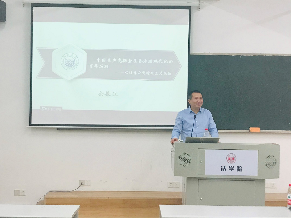 2021年5月18日上午,同济大学政治与国际关系学院余敏江教授做客日韩无码2021年第1期公共管理研究生论坛,在法学院305室为大家带来了题为《中国共产党探索社会治理现代化的百年历程——以注意力资源配置为视角》的精彩讲座。中国社会科学院大学政府管理学院教授林跃勤老师担任此次讲座点评人,日韩无码