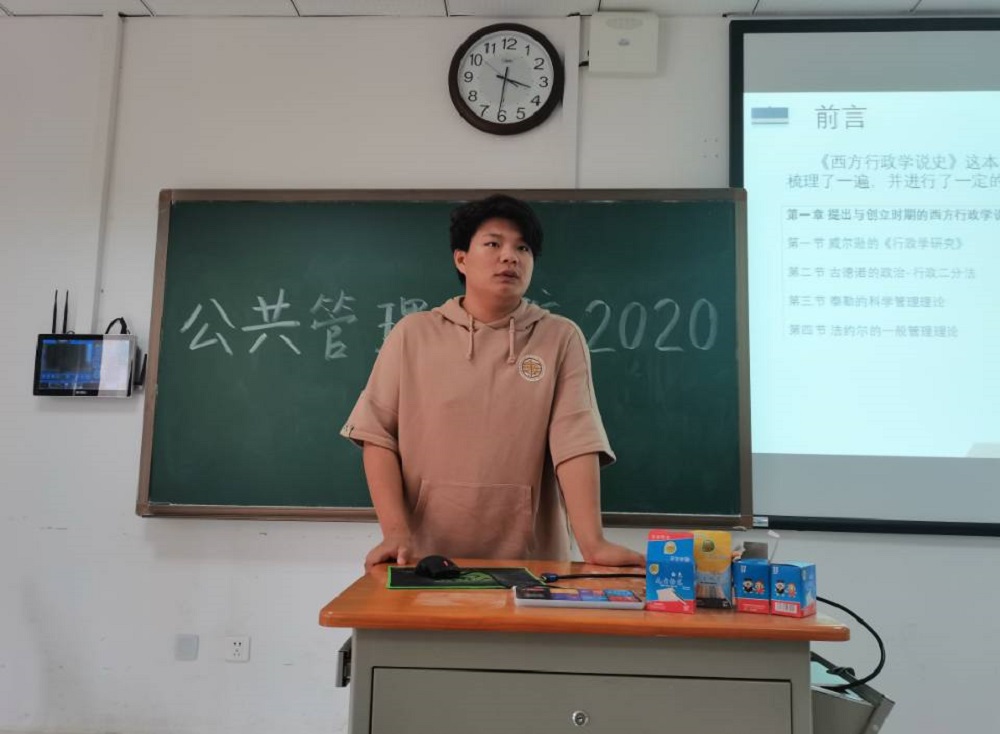 此次读书会,同学们主要围绕《西方行政学说史》展开探究讨论。王麒隆同学做简单开场白后,读书会正式开始。首先,管二班姚琪同学就西方行政学说的产生和发展历程进行了简要阐述。除书中观点外,姚琪同学还进行了适当拓展,向同学们展示了夏书章、丹尼尔雷恩等其他学者对西方行政学发展历程的不同划分方法。随后,管二班杨钦哲同学以杰出行政学家托马斯·伍德罗·威尔逊的行政学思想为落脚点,先后介绍了行政学研究的必要性、目标任务、历史渊源等。最后,管一班王麒隆同学截取书中部分内容,从古德诺的政治-行政二分法出发,分别就政治-行政二分法的必要性、条件性以及今后的路径与创新点展开探讨,引发了同学们深刻的思考。