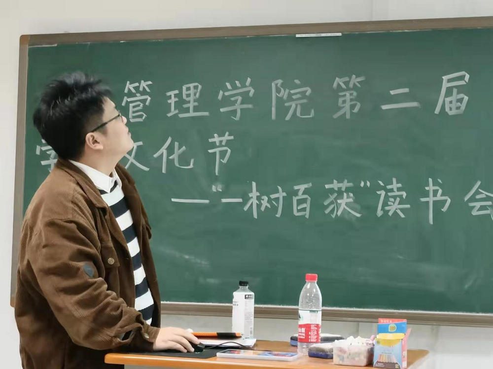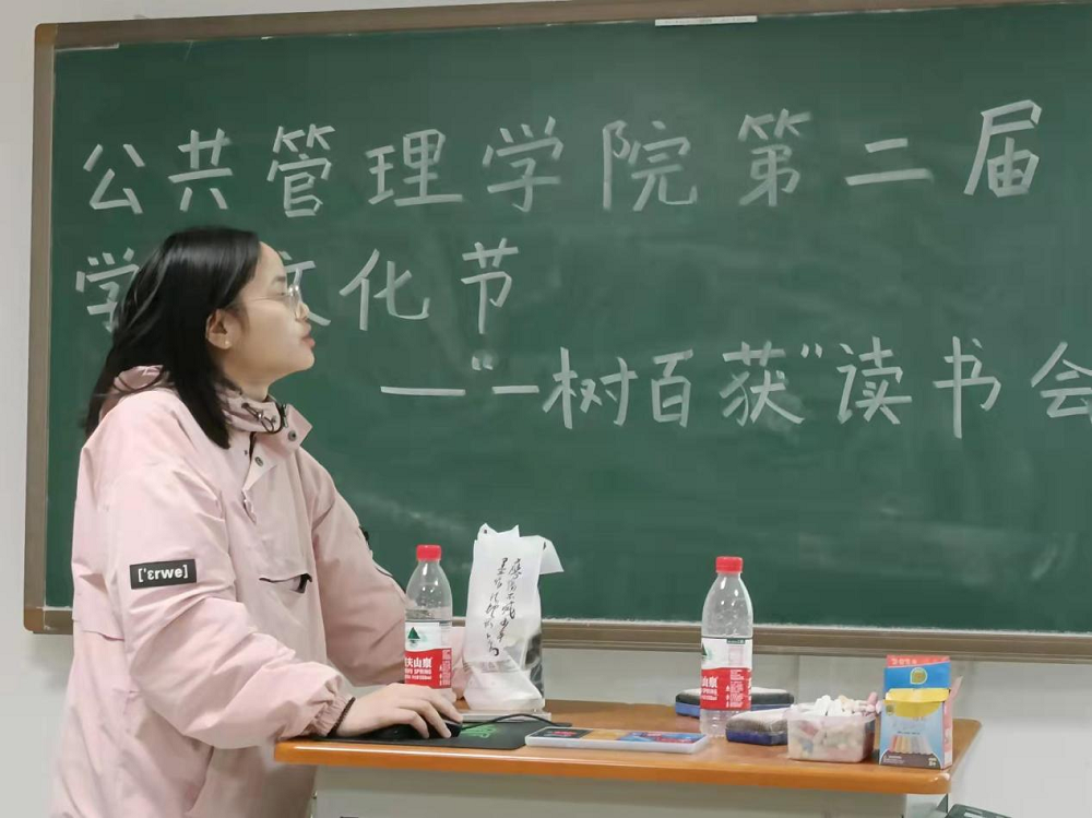 学术文化艺术节系列活动之“一树百获”读书会。本次读书会由21级本科生杨斐然主持,21级研究生王丽妮、谢维维主讲,行政管理21级全体本科生参加。