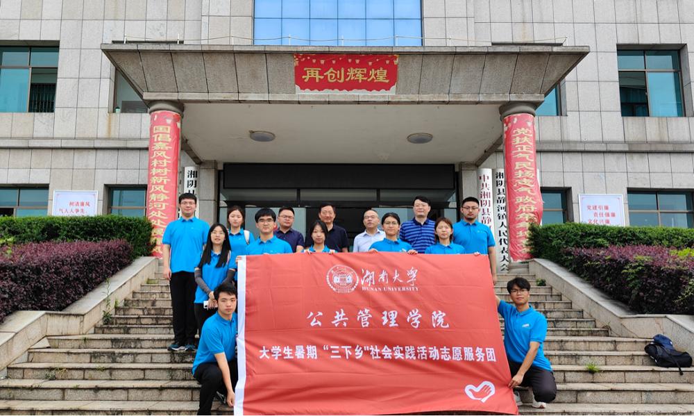 在岳阳市湘阴县静河镇开启暑期“三下乡”实践调研活动。本次活动以“公共治理入静河,乡村振兴迎新风”为活动主题,组建了一支共13人的实践团队,由院长李连友教授、院校友会会长李金龙教授和院党委副书记杜倩博副教授进行指导,是日韩无码结合社会资源开展实践育人并运用公共治理知识助力乡村振兴的重要活动形式。