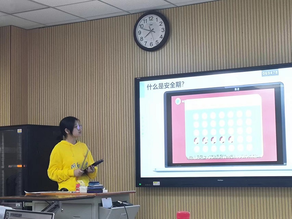 同伴教育联盟的发展历史及现况,并组织同学们进行几个小游戏,通过游戏培养同学们对艾滋病人的同理心以及增强同学们的自我保护意识。其次,由学姐详细地为同学们介绍艾滋病的现况、发展途径和艾滋病的预防与治疗,让同学们深化对艾滋病的科学认识。随后,学姐详细地为我们介绍了关于女性的生理健康知识,倡导大家关注身体健康。会后,部分同学表示此次青春健康主题班会让他们更全面地了解了艾滋病,也增长了青春健康的相关知识。