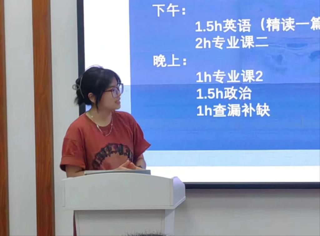 的黄建丽同学分享了她不同的科目的复习进度安排和一些考研资料供大家参考,强调要多做真题,把握好学习节奏。