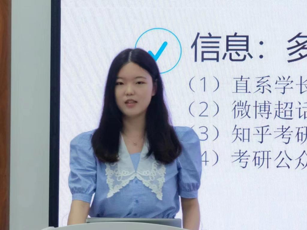 随后,考研至南京大学的苟惠同学毫无保留地与大家分享了她考研的经验,建议大家合理地安排一天的时间,在保证学习效率的同时也要保证劳逸结合,同时建议大家拓宽信息的来源渠道,以便于做出更为合适的选择。