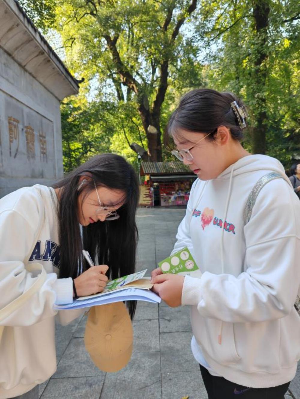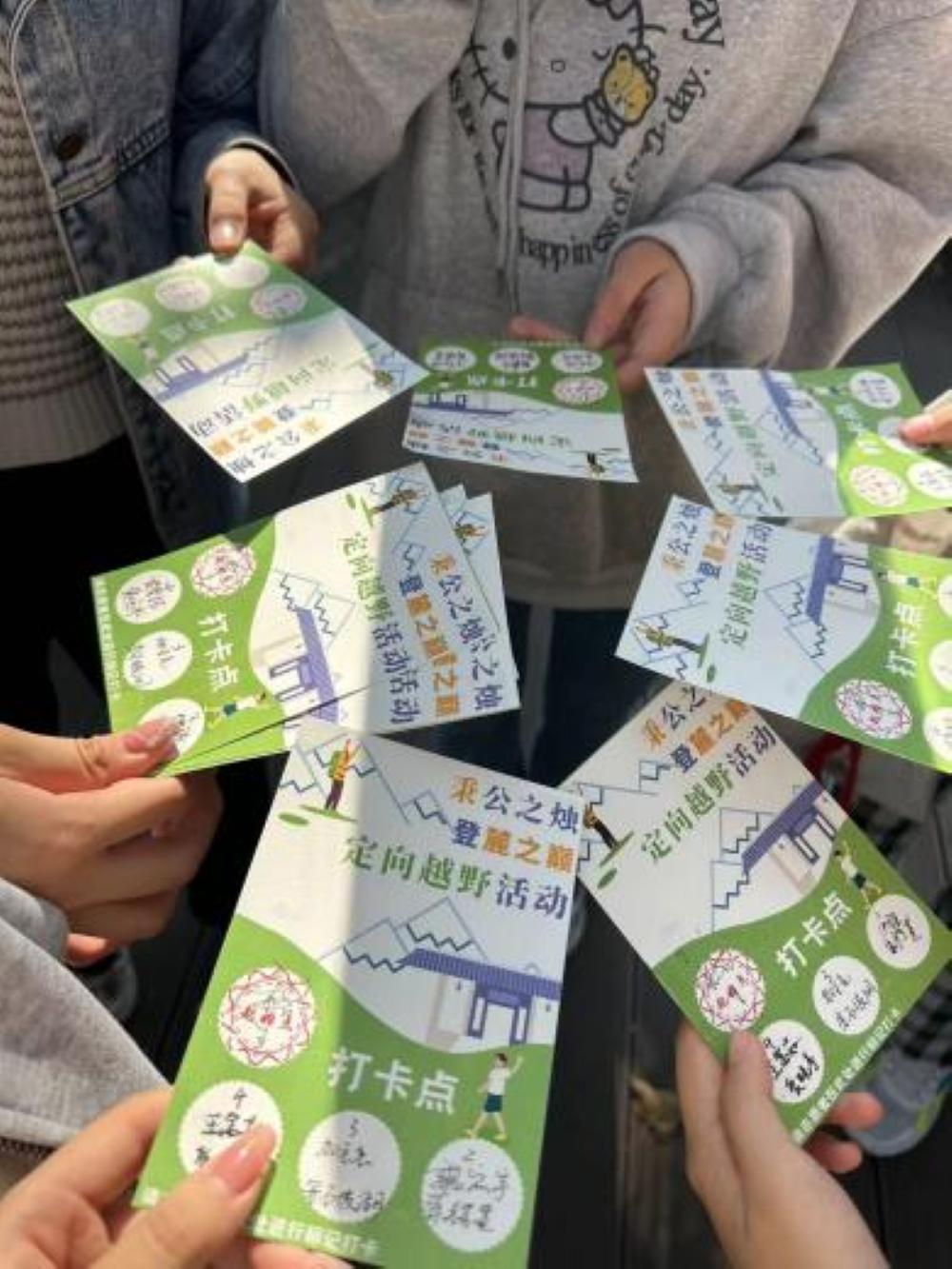 比赛正式开始,各参赛队员力争上游,跑步前往岳麓书院,在提示点以小组为单位进行知识闯关,以获取第一环节的提示信息。随后,各参赛队员开启了本次活动的第一个环节——在岳麓书院中寻找装有登山路线图及打卡图的信封。经过大胆探索与仔细寻找,各小队陆续找到信封,按登山路线分别前往各自的打卡点进行答题与游戏闯关。