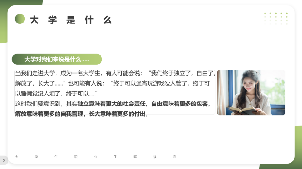 首先,任老师向同学们仔细地介绍了大学是什么,任老师说:“大学相对于高中是自由的,需要做出很多选择。”,希望同学们在大学找到自己喜欢的事情,可以是科研、体育运动,并坚持下去。