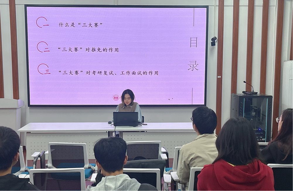 分享会上,李彦瑶对“三大赛”的赛事概况、参赛流程、评审标准等进行了详细介绍,帮助同学们全面了解比赛的基本规则和备赛方向。