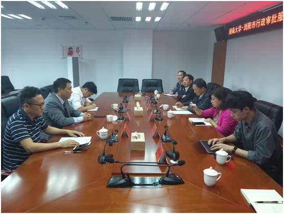 10月24日下午,李连友院长、雷玉琼副院长、谭海波副院长、郭渐强教授、陈少威副教授、鲁宇助理教授一行六人驱车来到浏阳市行政服务审批局,出席湖南大学校政合作创新创业教育示范基地的挂牌仪式。浏阳市行政审批服务局党组书记、局长余慧佳,浏阳市编办主任张之俭等参加此次仪式。