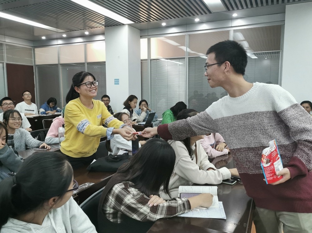 在稍后进行的有奖问答环节中,同学们积极思考,踊跃回答,活动氛围进入高潮。在对今天了解的知识巩固掌握后,行政管理1901班班长常铖作为代表上台做总结发言,表明同学们作为大学生应该自尊自爱,他再次呼吁同学们树立正确的公德观、是非观,共同营造和谐、文明的社会风尚。