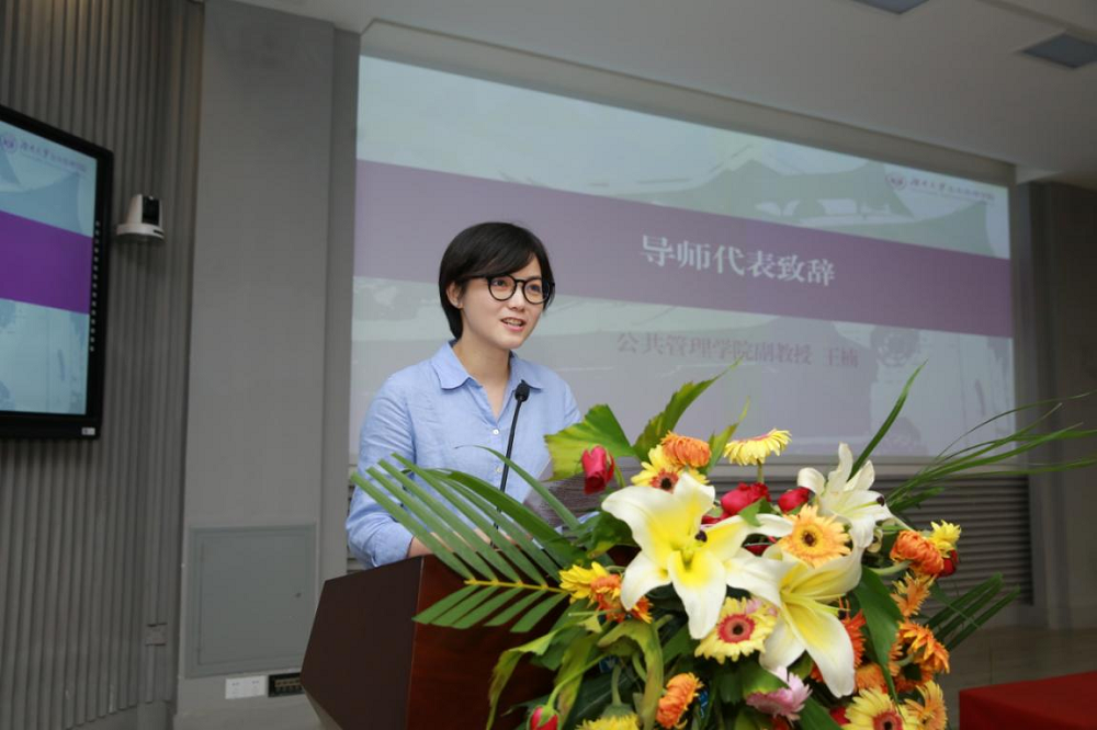 教师代表王楠老师在致辞中表示,大学毕业标志着身份的转变、职责的变化,但同学们仍要牢记自己公管人的身份,以及作为公管人的职责。她为毕业生们提出三点建议:坚持独立思考,不要随波逐流;成为制度的完善者,不要做制度的投机者;饱含着感情去体会他人的疾苦,不要做精致的嗜血理性人。“希望大家始终记得自己作为“公管人”的身份。哪怕没有机会身处公共政策制定与实施的第一线,也要做一个有智慧、有勇气、心怀天下的人,践行‘公管人’的使命与精神。”