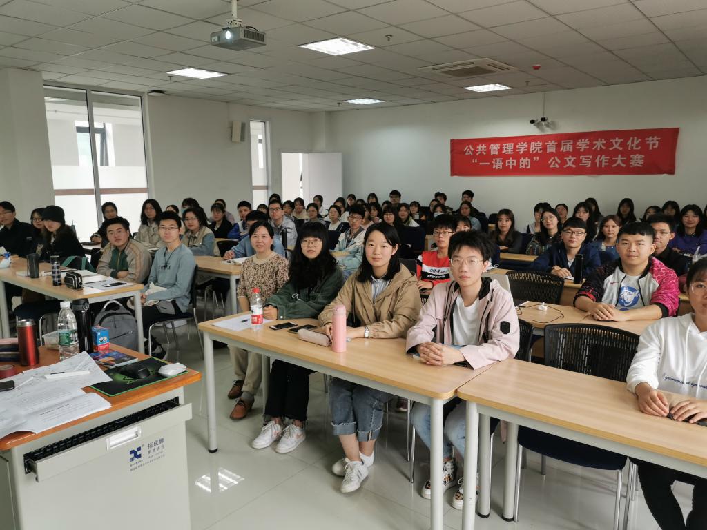 10月31日,日韩无码于研楼B403教室召开首届学术文化节系列活动之“一语中的”公文写作点评会。本次公文写作的主题为“推进C市政府‘垃圾分类’工作”,要求参赛学生以C市委办公厅工作人员的身份,为C市委书记撰写讲话稿。本次会议由占小林老师主讲,2018、2019级全体本科生参加会议。