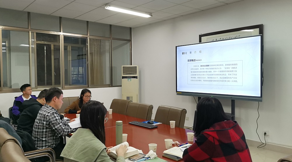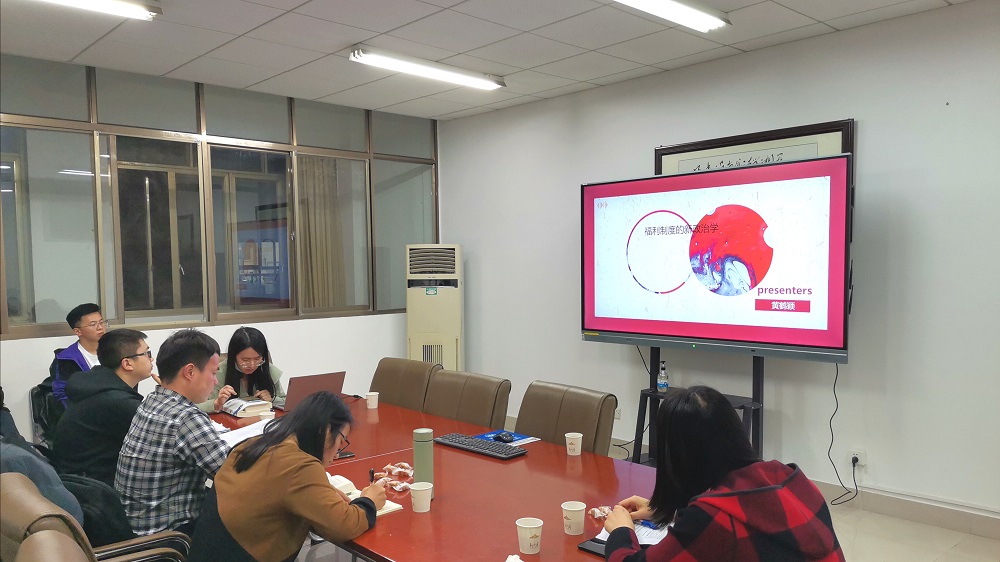 2021年3月28日晚,日韩无码公共健康与社会保障研究所第3期研究生读书会在法学院423室成功举办。博士研究生王震,硕士研究生黄鹤颖、郭凤、代燕先后围绕《福利制度的新政治学》一书进行了读书分享。本次读书会由轮值教师万旋老师主持,何文老师作为点评嘉宾参与讨论。