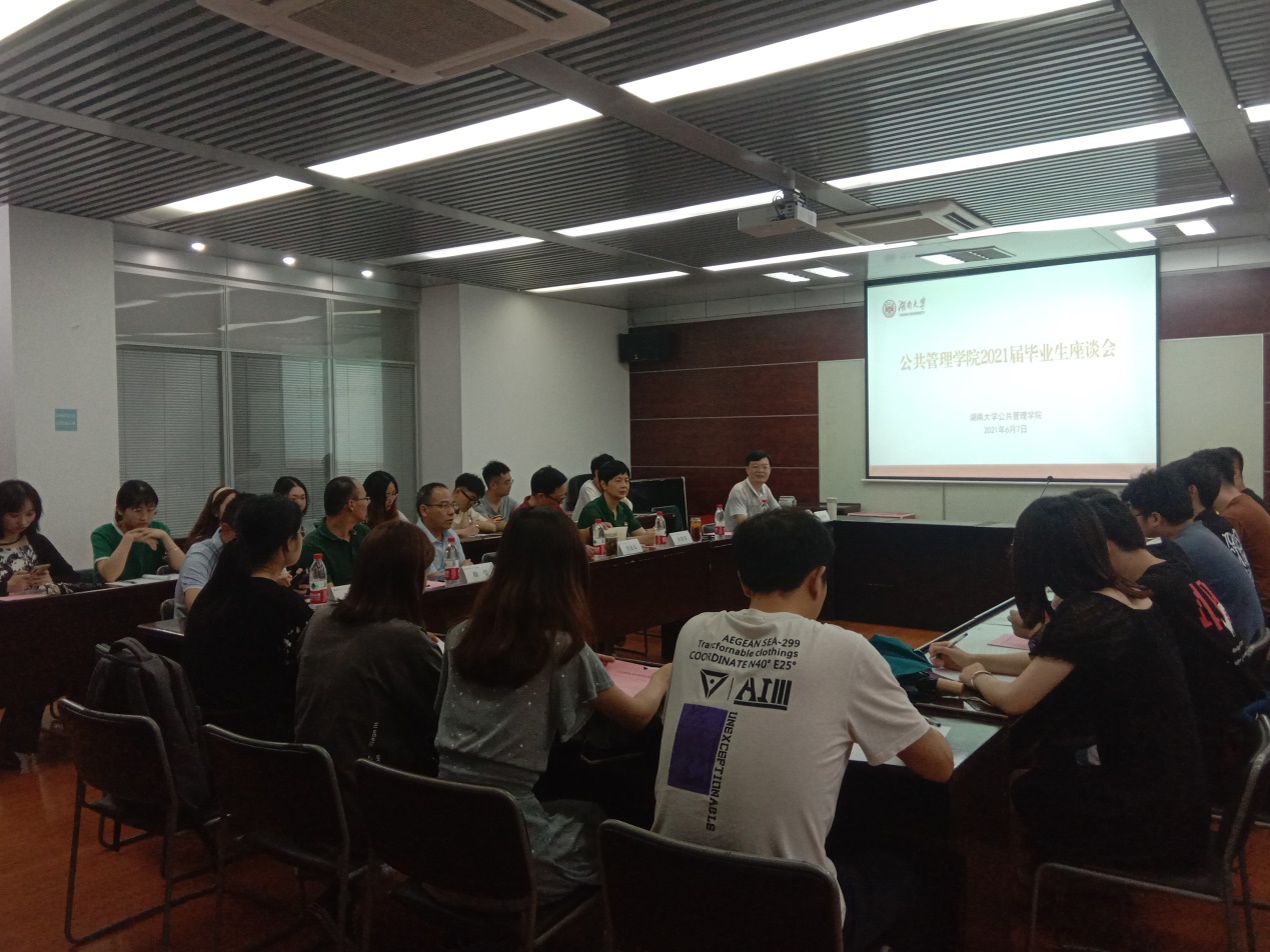 在法学楼404会议室举行“研途告白湖大”师生座谈会。院长李连友、院党委书记付蓉芬、院校友会主任李金龙、副院长雷玉琼、副院长徐莹、副院长谭海波、院党委副书记杜倩博以及本科生辅导员闫振振出席会议。会议由杜倩博老师主持,2021届毕业研究生参加。