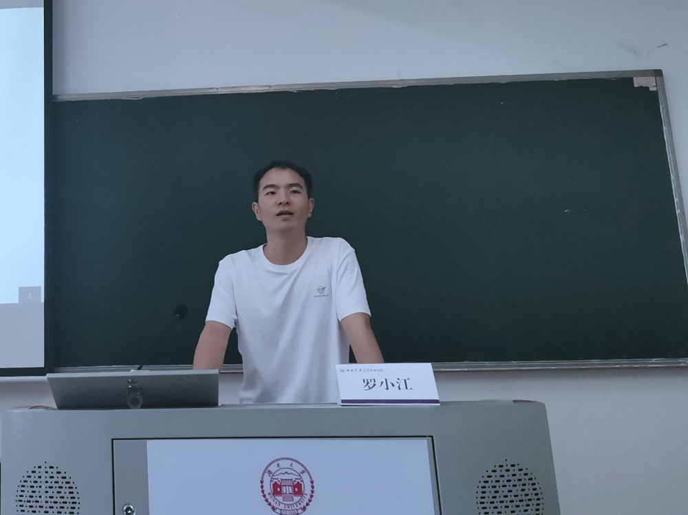 会议伊始,荣获湖南省2021届优秀毕业生的罗小江,以《觉醒年代》视频片段开启了本次分享。罗小江分享的主题是“笃定理想+主动创新学习+坚持不懈=无悔青春”,他从“追求崇高理想,笃定青年理想”、“主动自主学习,营造良好环境”、“坚持探索实践,主动认识感悟”三个方面进行介绍。他强调伟人的使命和理想都源于实践,科研与现实也密不可分,应积极进行实地调研、深入基层扎根基层,真正把论文写在中国大地上。其次,为启发大家选题思路和扎实学习,他分享了个人相关经验。最后,他勉励大家积极践行日韩无码