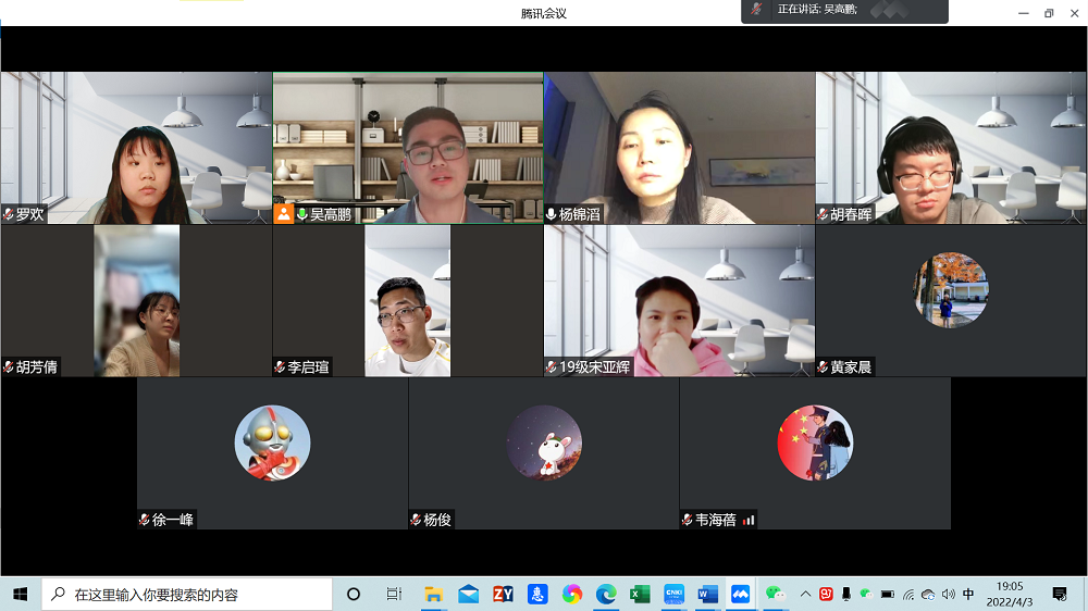 学院博士年级班长宋亚辉、李启瑄、杨俊分享了疫情期间学术科研的经验,勉励学弟学妹们严以律己,定时学习,加强与导师之间沟通,及时推动论文写作;也分别阐述了疫情管控期间在校与居家隔离感悟,提及在实践中不断提高的学校管控水平、在社区管理应用普遍的数字技术等。
