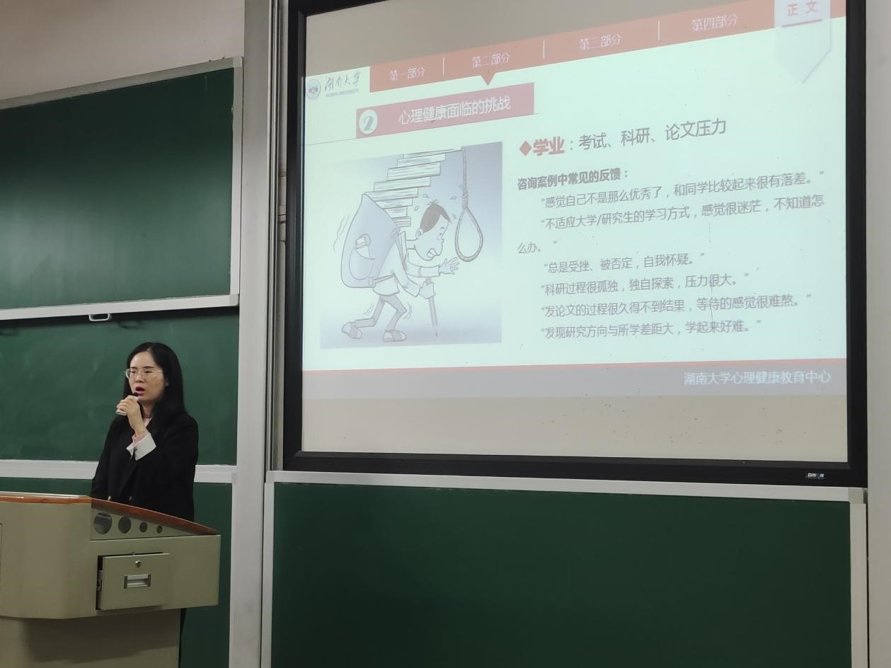 在轻松愉快的氛围中,林老师将心理学理论与具体事例相结合,为2023级本研新生详细讲解了应该如何正确认识自己的心理健康状态,并全面介绍了本科生和研究生阶段可能会面临的心理健康挑战,包括学业压力、人际关系、就业选择等。