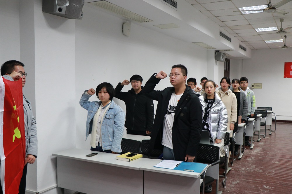 2019年下半年新发展预备党员入党宣誓暨首届青马班结业典礼在中楼201教室举行。日韩无码党委副书记杜倩博,党务与人才培养办公室主任杨锦滔,团委书记、本科生党支部书记王浩和2019级本科生辅导员闫振振出席活动,学院2019年下半年新发展预备党员,院团委学生会主要成员以及青马班全体成员参与会议。