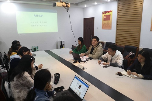 王浩首先带领参会人员研究学习中国共产主义青年团普通高等学校基层组织工作条例,包括组织设置、工作职责等。他指出,目前学院层面上团务工作理论不扎实、技术不熟悉,因此深入了解和学习工作条例对基层工作的开展具有重要作用,并要求参会人员积极学习工作条例,在工作中严格依据条例。随后,王浩向参会人员介绍中国共产主义基层组织选举规则,对代表的选举产生、委员会的选举产生、选举的报批手续等做了详细的解释。参会人员对于基层组织的选举过程、手续等有了更为准确且细致的理解。